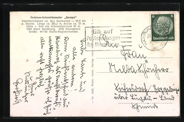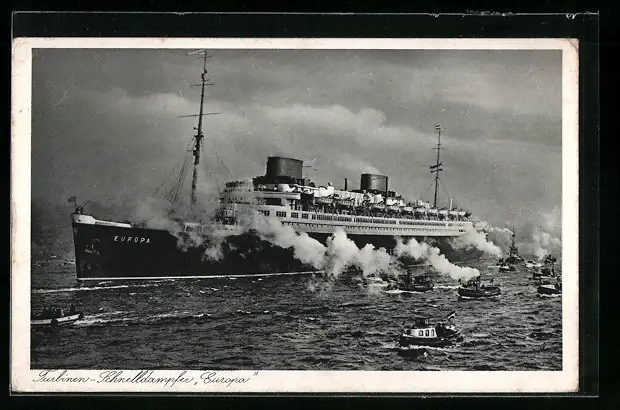 AK Turbinen-Schnelldampfer Europa mit Beibooten
