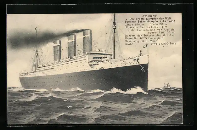 AK Turbinen-Schnelldampfer Vaterland, Passagierdampfer auf hoher See
