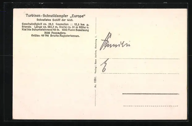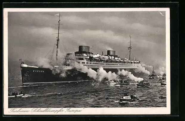 AK Turbinenschnelldampfer Europa vor Anker