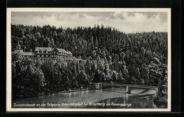 AK Turmsteinbaude, Ortsansicht a. d. Talsperre Boberröhrsdorf