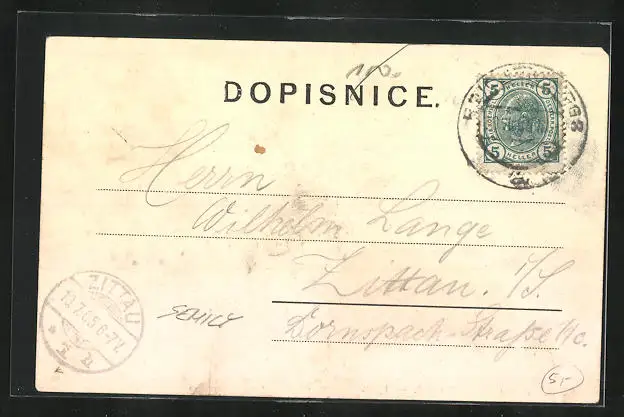 gelaufen 1905, Ecken bestoßen, Ecke li. oben leicht beschädigt, sonst guter Zustand