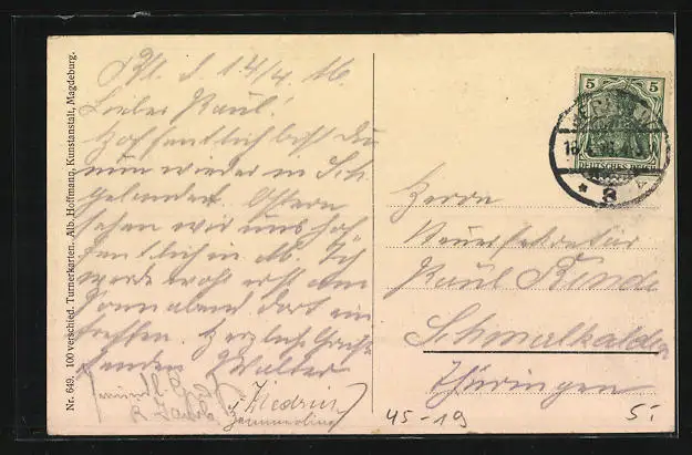 alte Ansichtskarte, gelaufen 1916, Stempelspur, Eckknick li. unten, guter Zustand