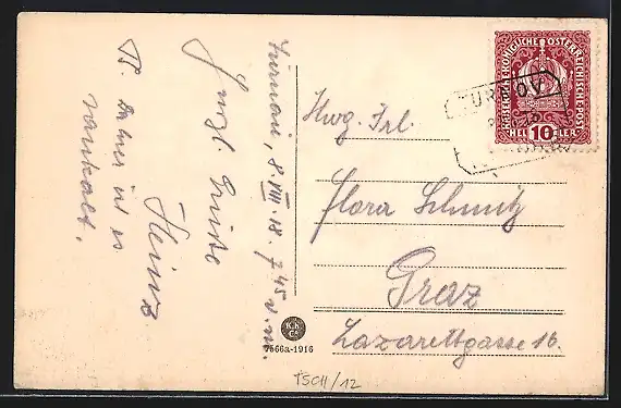 alte Ansichtskarte, gelaufen 1918, Stempelspur, guter Zustand