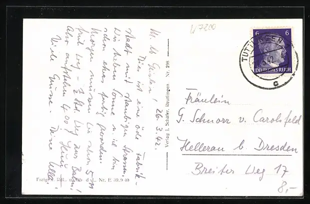 alte Ansichtskarte, gelaufen 1942, guter Zustand