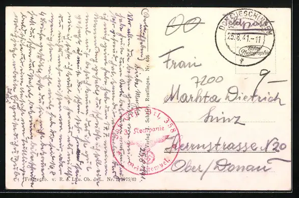 alte Ansichtskarte, gelaufen 1941, guter Zustand