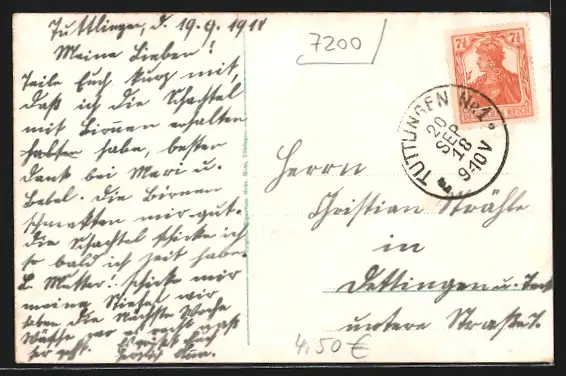 gelaufen 1918, kleiner Einriss re. oben, guter Zustand