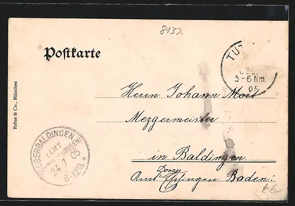alte Ansichtskarte, gelaufen 1905, Briefmarke entfernt, rückseitig Oberflächenschaden, guter Zustand