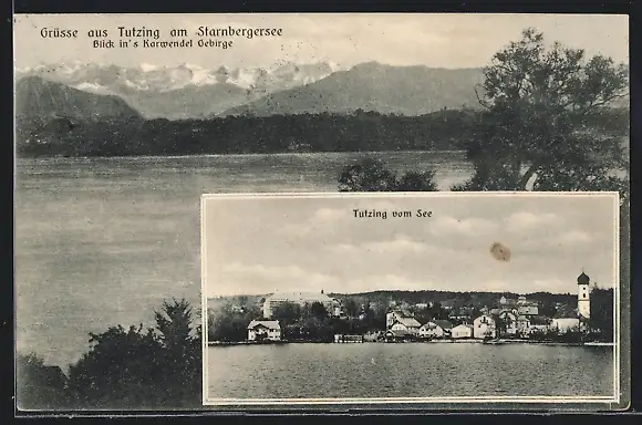 AK Tutzing am Starnberger See, Karwendelgebirge, Ortspartie am Seeufer