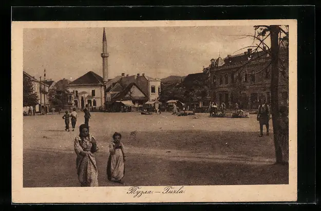AK Tuzla, Ortspartie mit Einwohnern und Minarett
