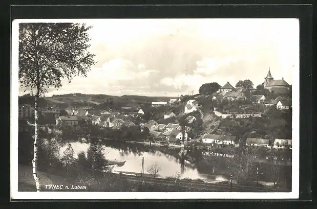 AK Tynec nad Labem, Blick über die Elbe zum Ort