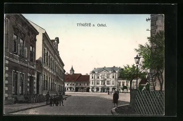 AK Týniste n. Orlicí, Kinder auf dem Platz der Stadt