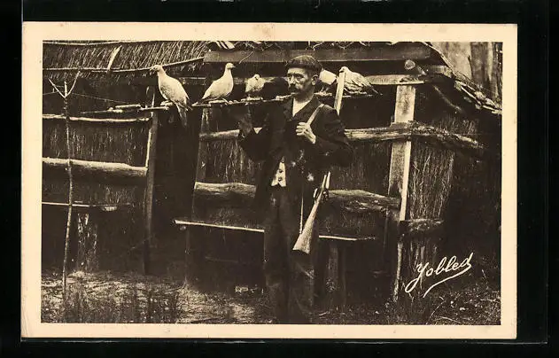 AK Types Landais, Chasseur de Palombes avec ses Appeaux, Jäger mit Tauben