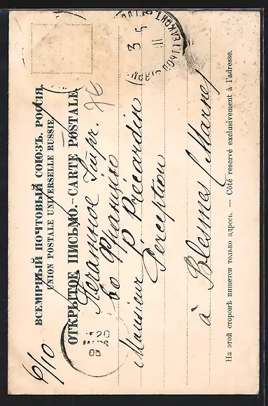 Personenbezogene Daten auf der Rückseite der Karte wurden durch blauen Textmarker unkenntlich gemacht. Die blauen Stellen sind auf die Vorderseite durchgeweicht und wirken sich negativ auf das Postkartenfoto aus