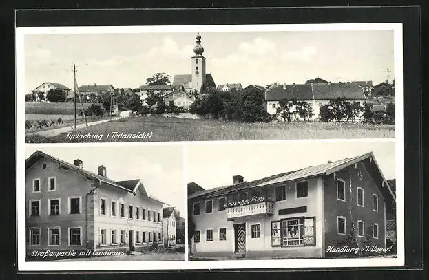 AK Tyrlaching, Strassenpartie mit Gasthaus, Handlung v. J. Bayerl, Teilansicht
