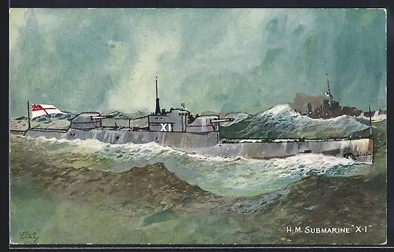 AK U-Boot H. M. Submarine X-I beim Auftauchen