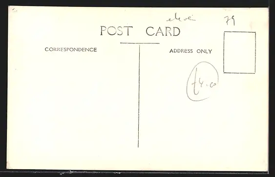 Personenbezogene Daten auf der Rückseite der Karte wurden durch blauen Textmarker unkenntlich gemacht. Die blauen Stellen sind auf die Vorderseite durchgeweicht und wirken sich negativ auf das Postkartenfoto aus