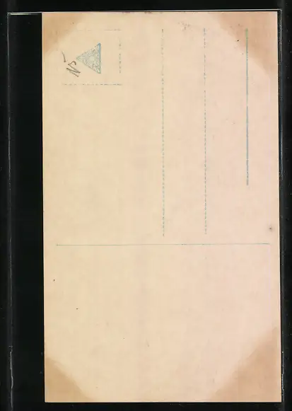 Personenbezogene Daten auf der Rückseite der Karte wurden durch blauen Textmarker unkenntlich gemacht. Die blauen Stellen sind auf die Vorderseite durchgeweicht und wirken sich negativ auf das Postkartenfoto aus