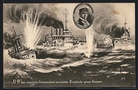 AK U-Boot U 9 vernichtet 3 englische grosse Kreuzer