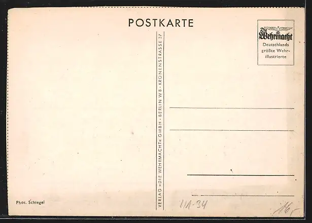 Personenbezogene Daten auf der Rückseite der Karte wurden durch blauen Textmarker unkenntlich gemacht. Die blauen Stellen sind auf die Vorderseite durchgeweicht und wirken sich negativ auf das Postkartenfoto aus
