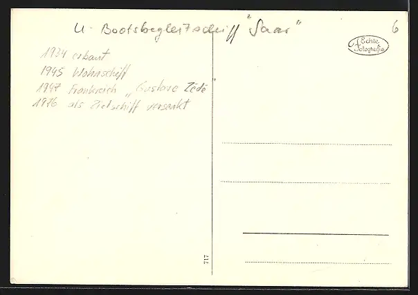 AK U-Bootbegleitschiff Saar sticht in See