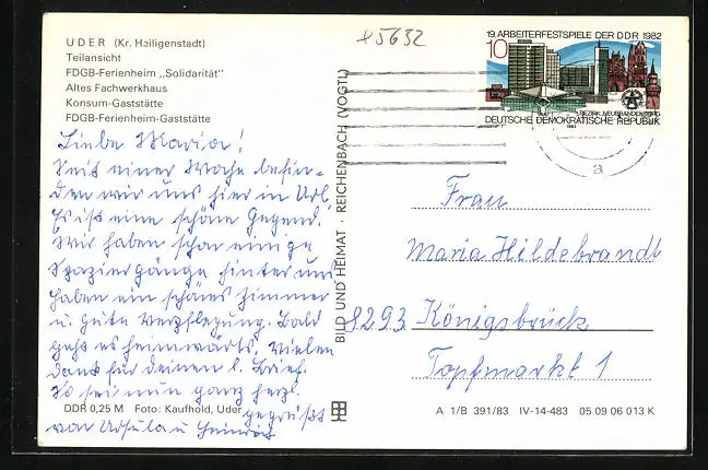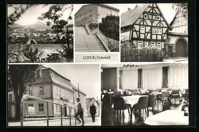 AK Uder b. Heiligenstadt, Teilansicht, Altes Fachwerkhaus, FDGB-Ferienheim-Gaststätte