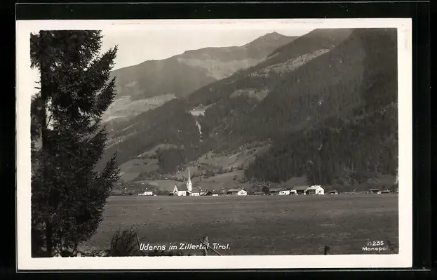 AK Uderns im Zillertal, Ortspanorama mit der Kirche