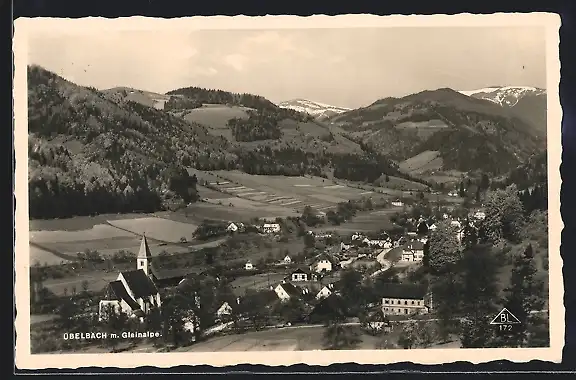 AK Übelbach, Ortsansicht mit der Gleinalpe
