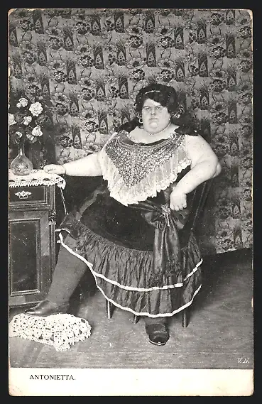 AK Übergewichtige Frau Antonietta auf einem Stuhl