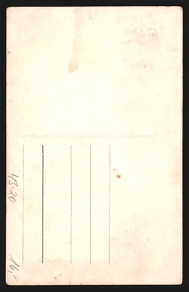 Personenbezogene Daten auf der Rückseite der Karte wurden durch blauen Textmarker unkenntlich gemacht. Die blauen Stellen sind auf die Vorderseite durchgeweicht und wirken sich negativ auf das Postkartenfoto aus