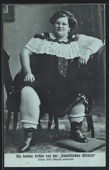 AK Übergewichtige Gemütliche Sächsin sitzt auf 2 Stühlen