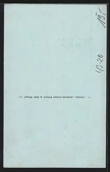 Personenbezogene Daten auf der Rückseite der Karte wurden durch blauen Textmarker unkenntlich gemacht. Die blauen Stellen sind auf die Vorderseite durchgeweicht und wirken sich negativ auf das Postkartenfoto aus
