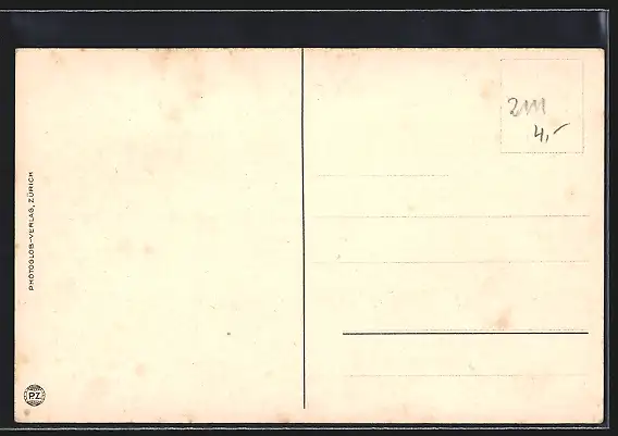 Personenbezogene Daten auf der Rückseite der Karte wurden durch blauen Textmarker unkenntlich gemacht. Die blauen Stellen sind auf die Vorderseite durchgeweicht und wirken sich negativ auf das Postkartenfoto aus