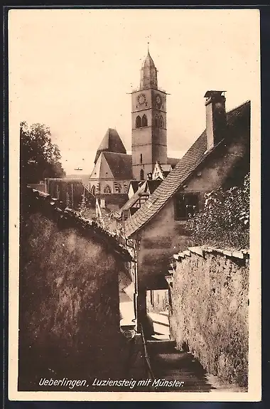 AK Überlingen / Bodensee, Luziensteig mit Münster