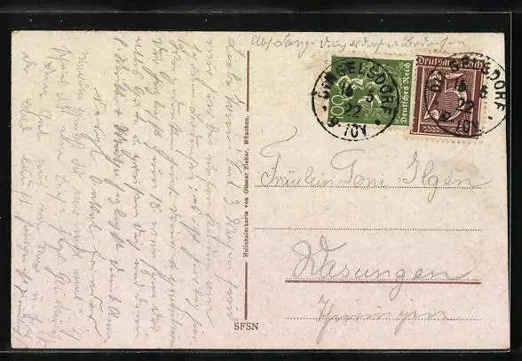 alte Ansichtskarte, gelaufen 1922, Eckknicke unten, Stempelspur, guter Zustand