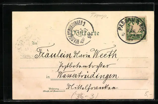 alte Ansichtskarte, gelaufen 1899, Stempelspur, guter Zustand