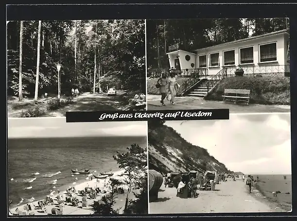 AK Ückeritz auf Usedom, Haus Strandklause, Strandpartie mit Booten