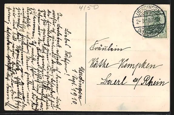 gelaufen 1910, Eckknick unten re., guter Zustand