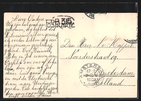 alte Ansichtskarte, gelaufen 1909, Briefmarke entfernt, rückseitig Oberflächenschaden, guter Zustand