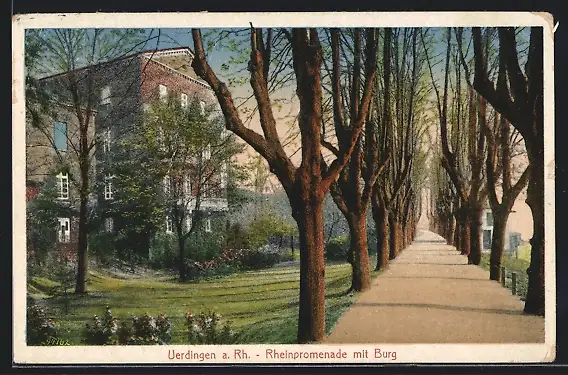 AK Uerdingen a. Rh., Rheinpromenade mit Burg