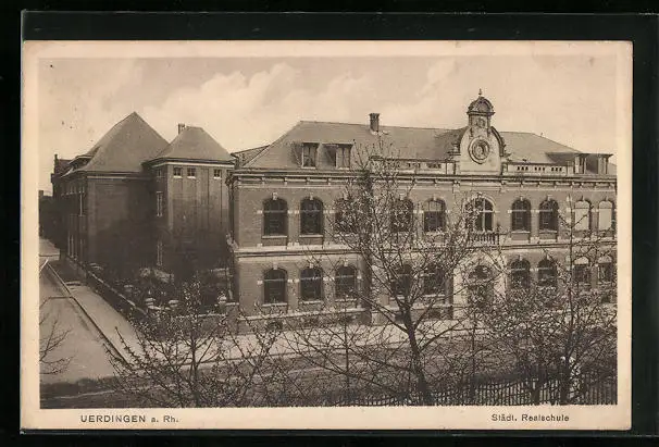 AK Uerdingen a. Rh., Städt. Realschule mit Strasse aus der Vogelschau