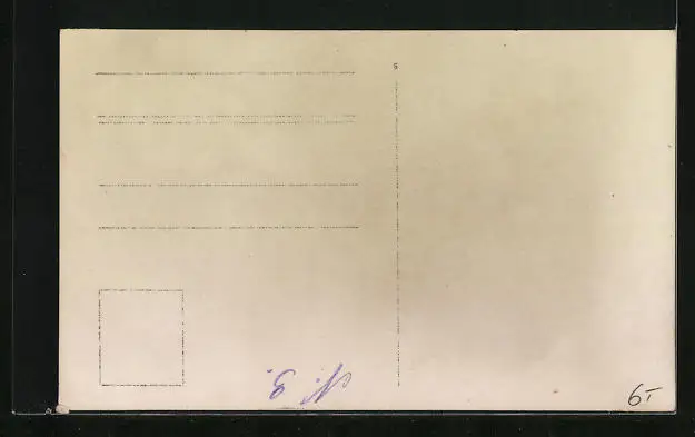 Personenbezogene Daten auf der Rückseite der Karte wurden durch blauen Textmarker unkenntlich gemacht. Die blauen Stellen sind auf die Vorderseite durchgeweicht und wirken sich negativ auf das Postkartenfoto aus