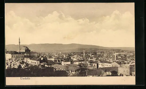 AK Uesküb, Ortsansicht aus der Vogelschau