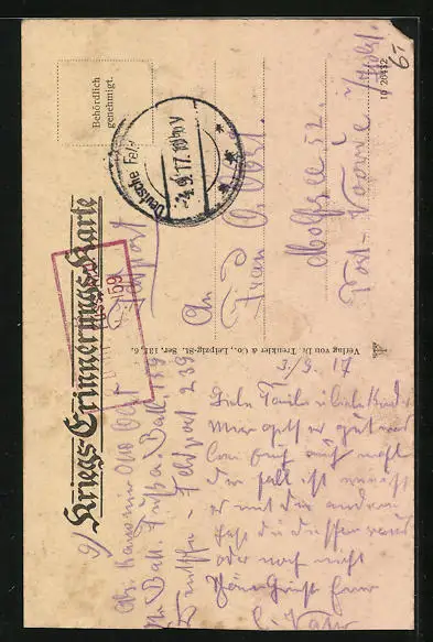 gelaufen 1917, Ecke beschnitten oben li., guter Zustand