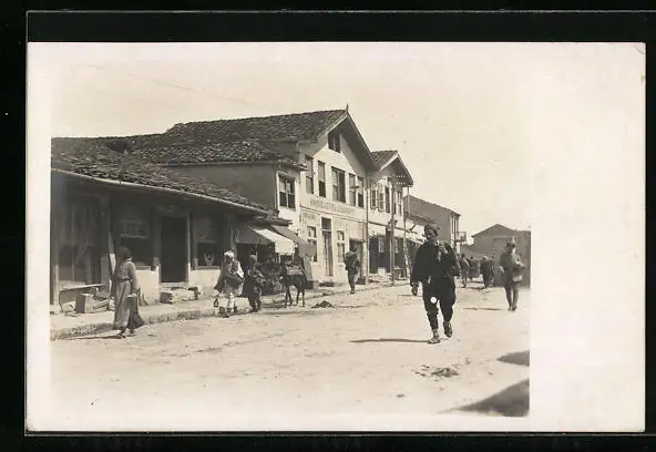 AK Üskueb, Strassenpartie mit Anwohnern und Gebäuden