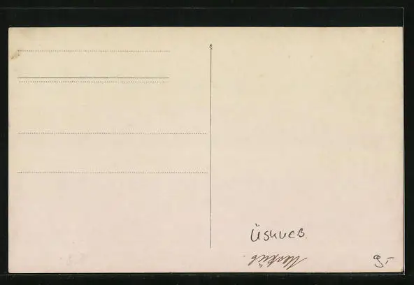 Personenbezogene Daten auf der Rückseite der Karte wurden durch blauen Textmarker unkenntlich gemacht. Die blauen Stellen sind auf die Vorderseite durchgeweicht und wirken sich negativ auf das Postkartenfoto aus
