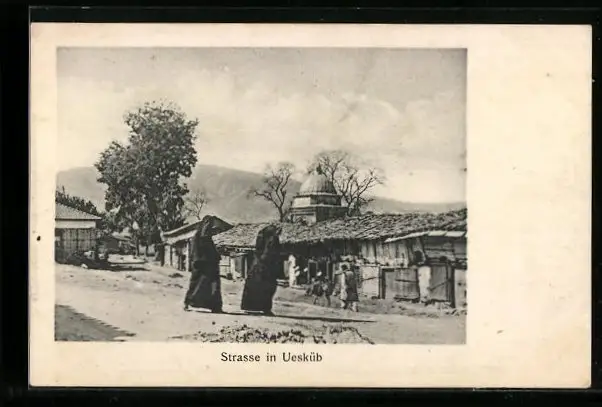 AK Uesküb, Strassenpartie mit voll verschleierten Damen