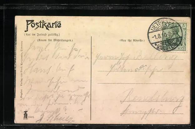 alte Ansichtskarte, gelaufen 1910, guter Zustand