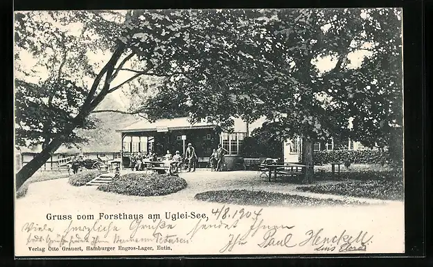 AK Uglei, Gaststätte Forsthaus am Uglei-See, Gartenansicht