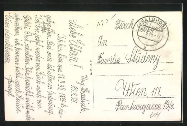 alte Ansichtskarte, gelaufen 1939 als Feldpost, guter Zustand