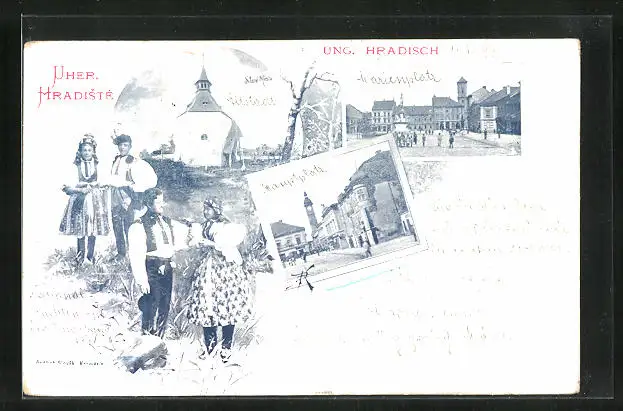 AK Uherské Hradiste, Ortspartie und Strassenpartie, Paare in Tracht